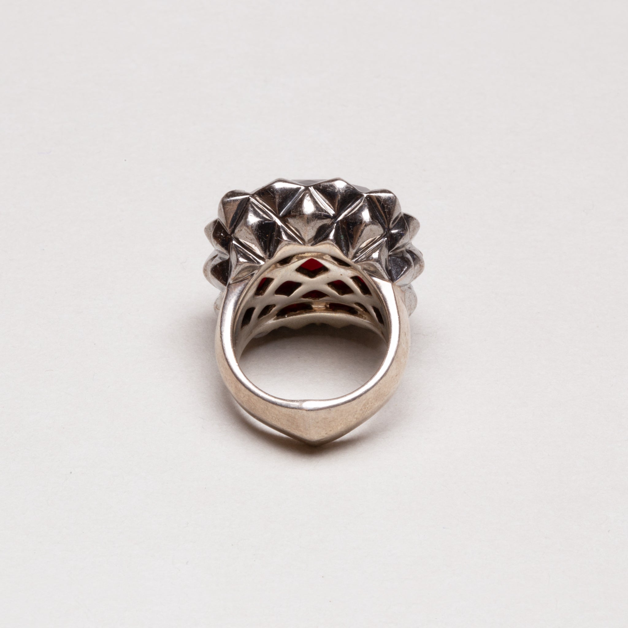 The central feature of this ring is the exquisite garnet that is nestled within a silver setting. This stunning gemstone has a deep, rich hue that will add a pop of colour to any outfit.