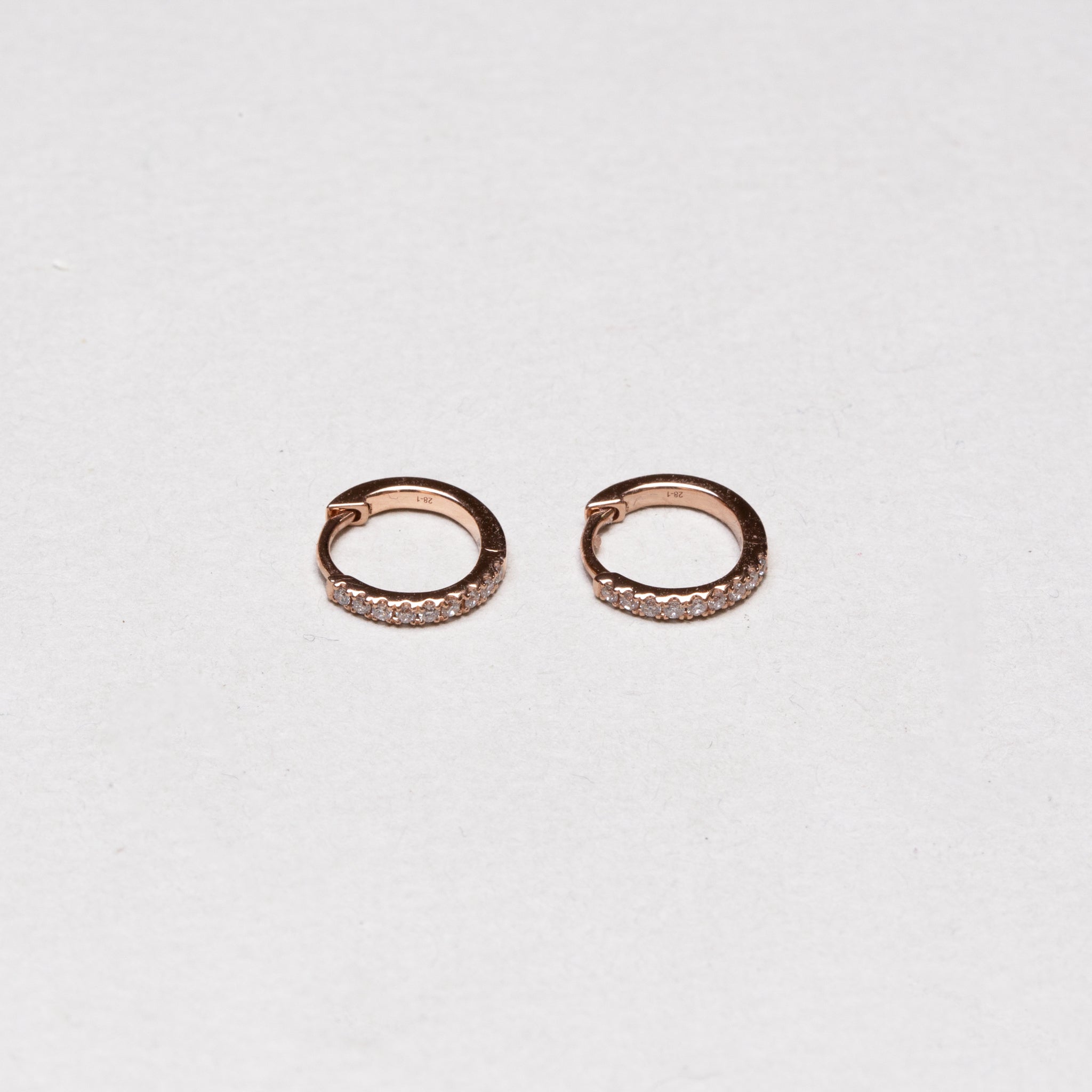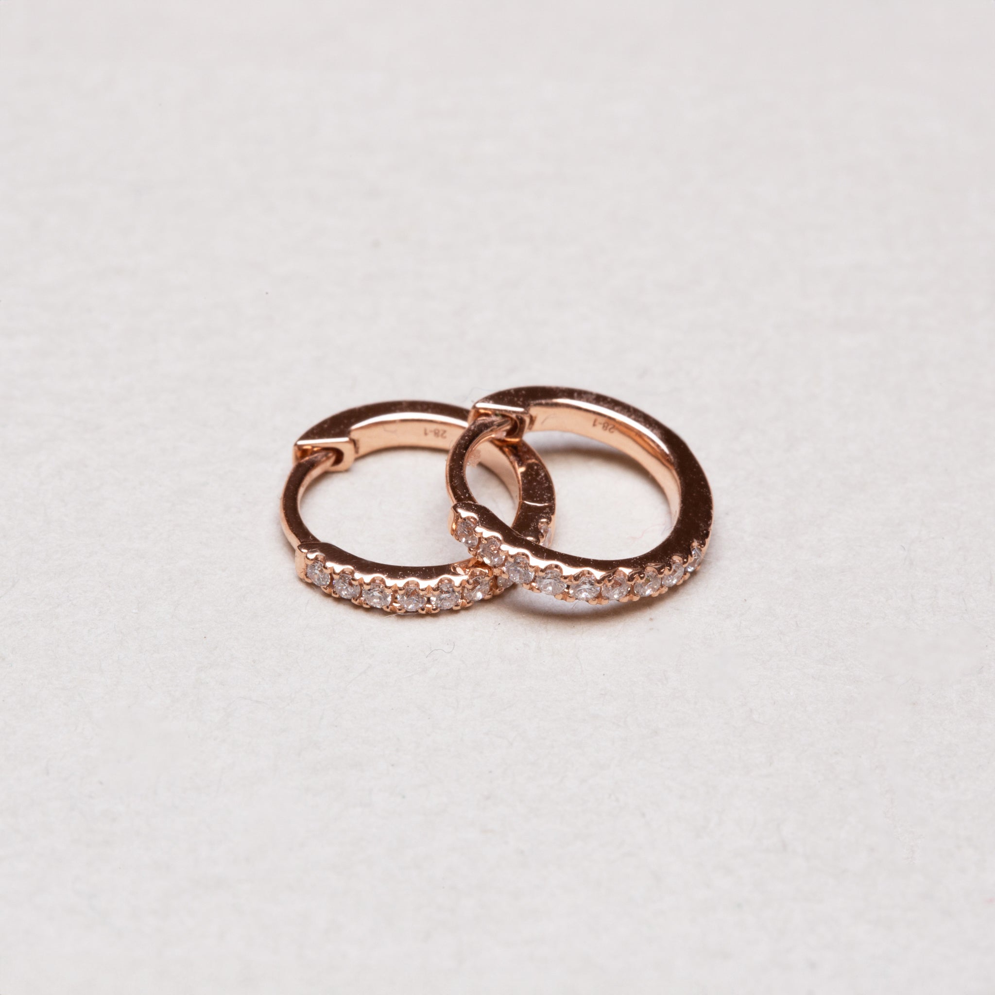 Our forever bestselling "Little Diamond Hoops" in a newly revised round design. These are by far our most beloved earrings and have become a defining feature of some of the coolest women out there. They have been lovingly created from 18 carat white and yellow gold and pave set diamonds.