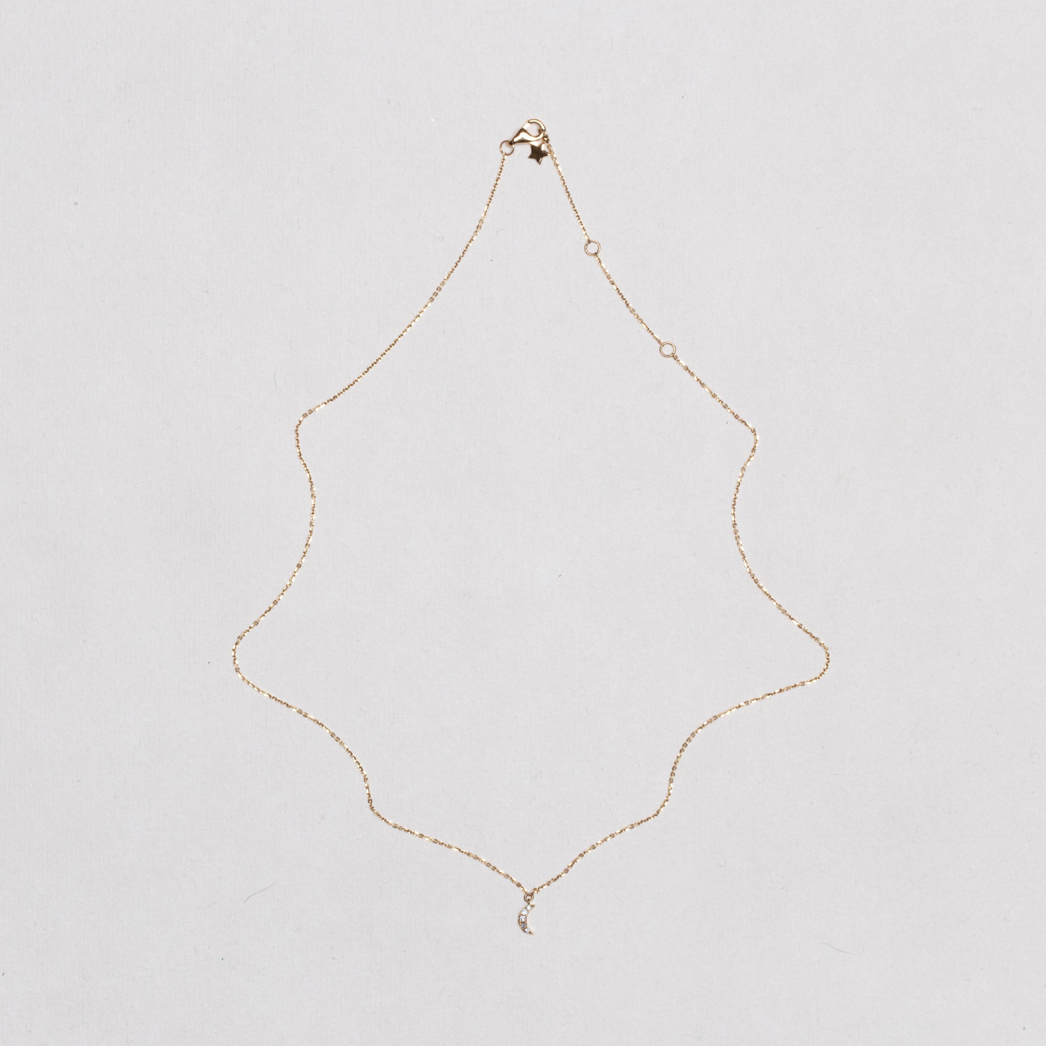 Delicately crafted in solid 18ct gold, this elegant necklace features a sparkling crescent-moon pendant set with brilliant-cut diamonds.