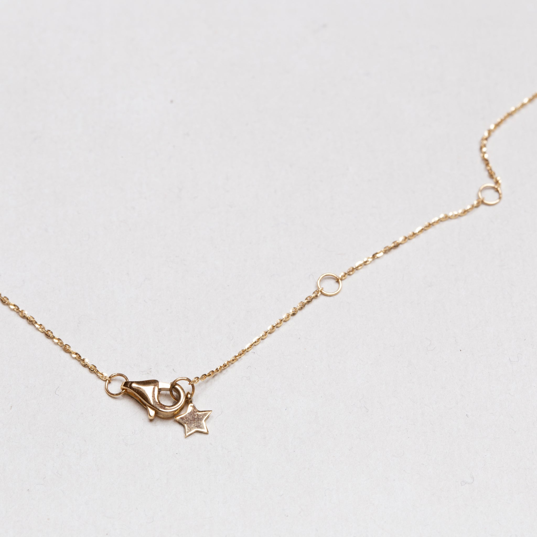 The 43 cm fine chain includes adjustable fastening loops for versatile styling, while a tiny gold star charm near the clasp adds a whimsical finishing touch.