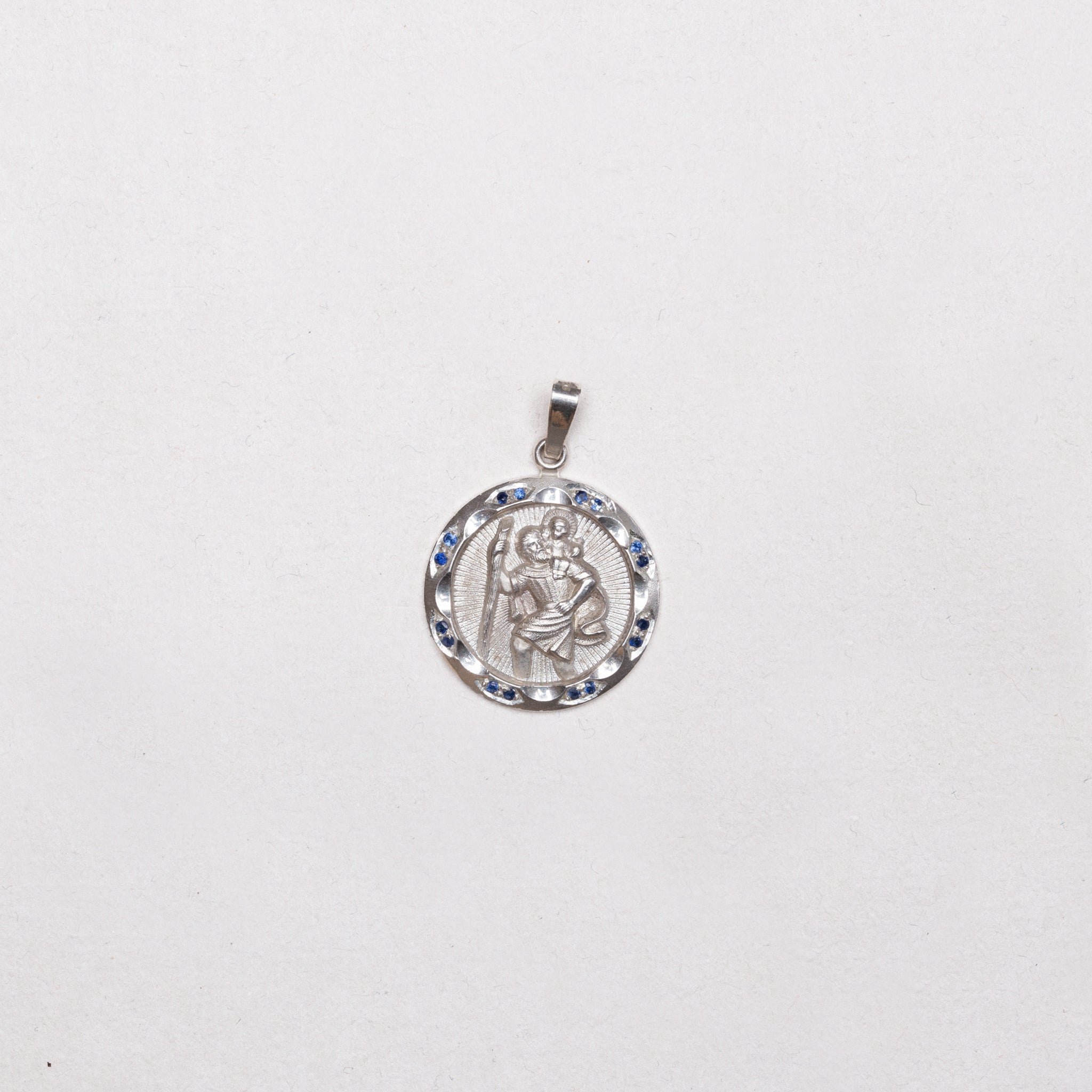 A beautiful, rare St. Christopher pendant charm, featuring a delicately crafted design of the saint enclosed within a circular frame.