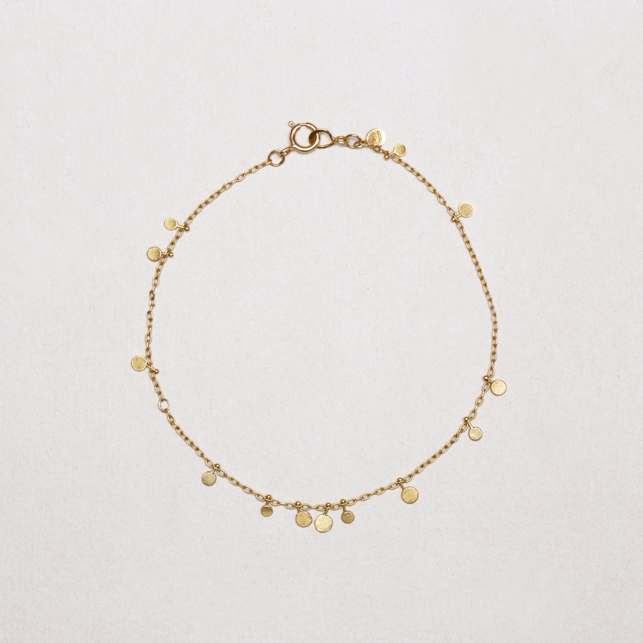 Meticulously made by hand in 18ct yellow gold, tiny gold dots are sitting at random points along the length of a fine gold chain. Absolutely dreamy.