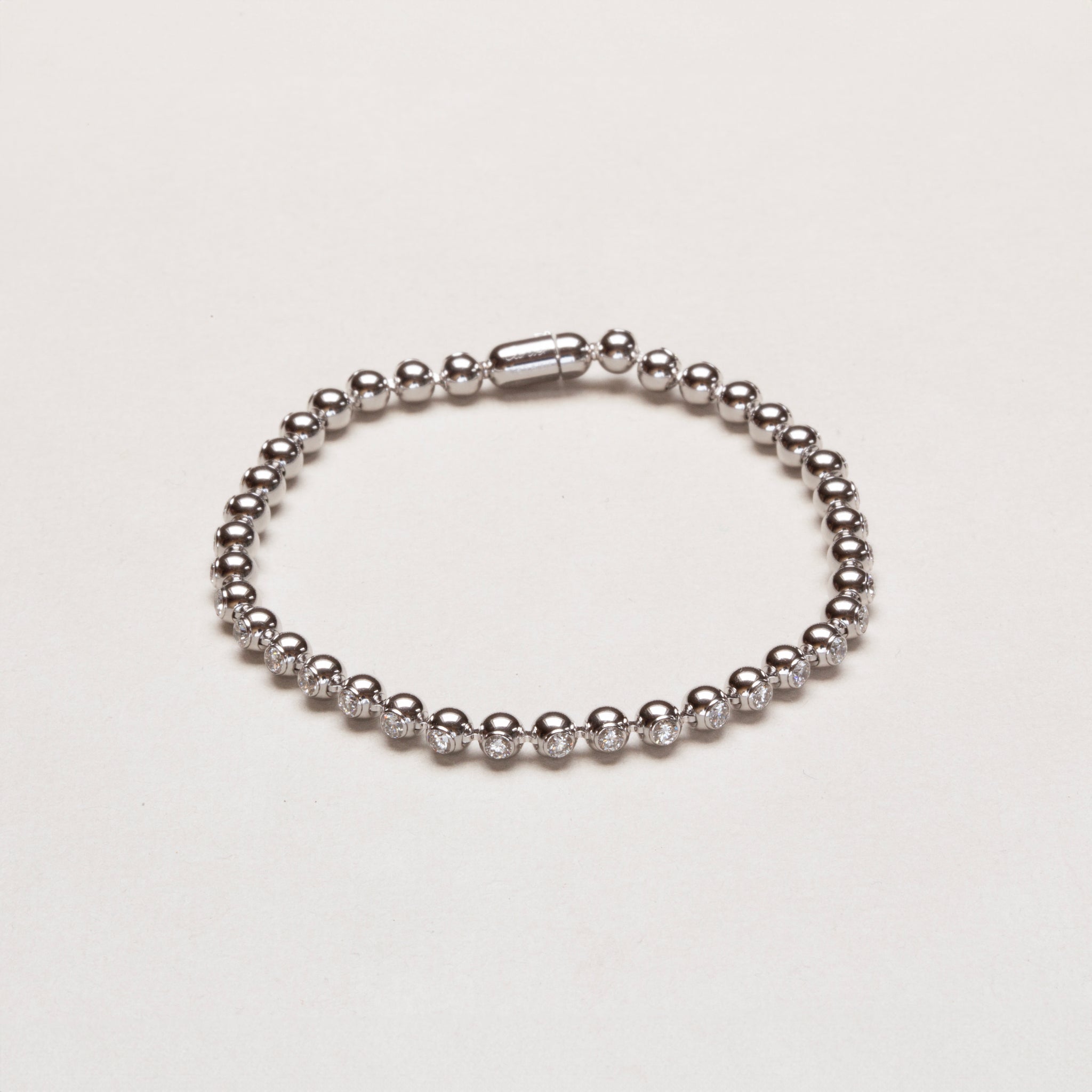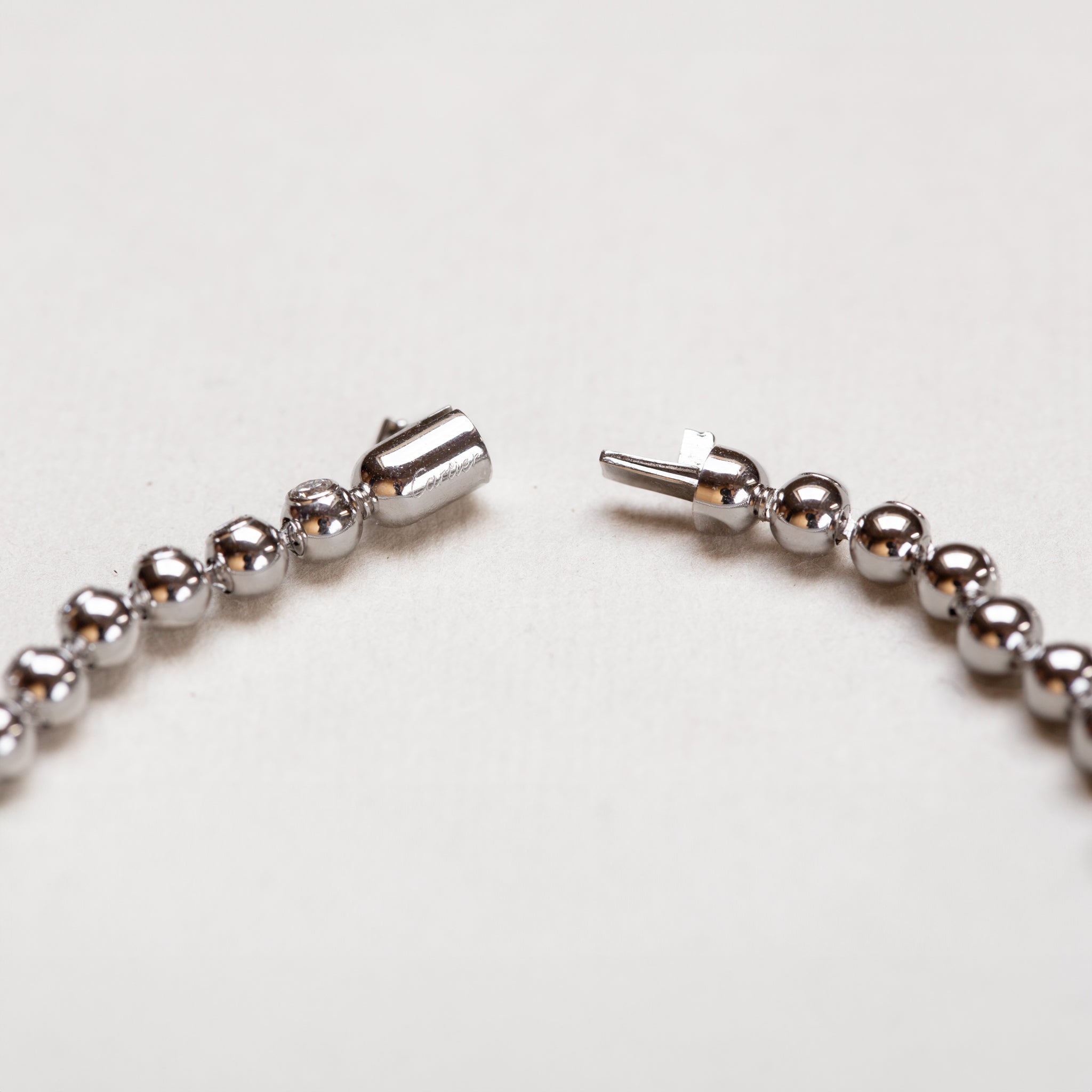 A vintage Cartier ‘Perles’ bracelet, crafted in 18ct white gold and set with brilliant-cut diamonds. The design offers a refined reinterpretation of the classic tennis bracelet, featuring a concealed clasp engraved with the Cartier signature.
