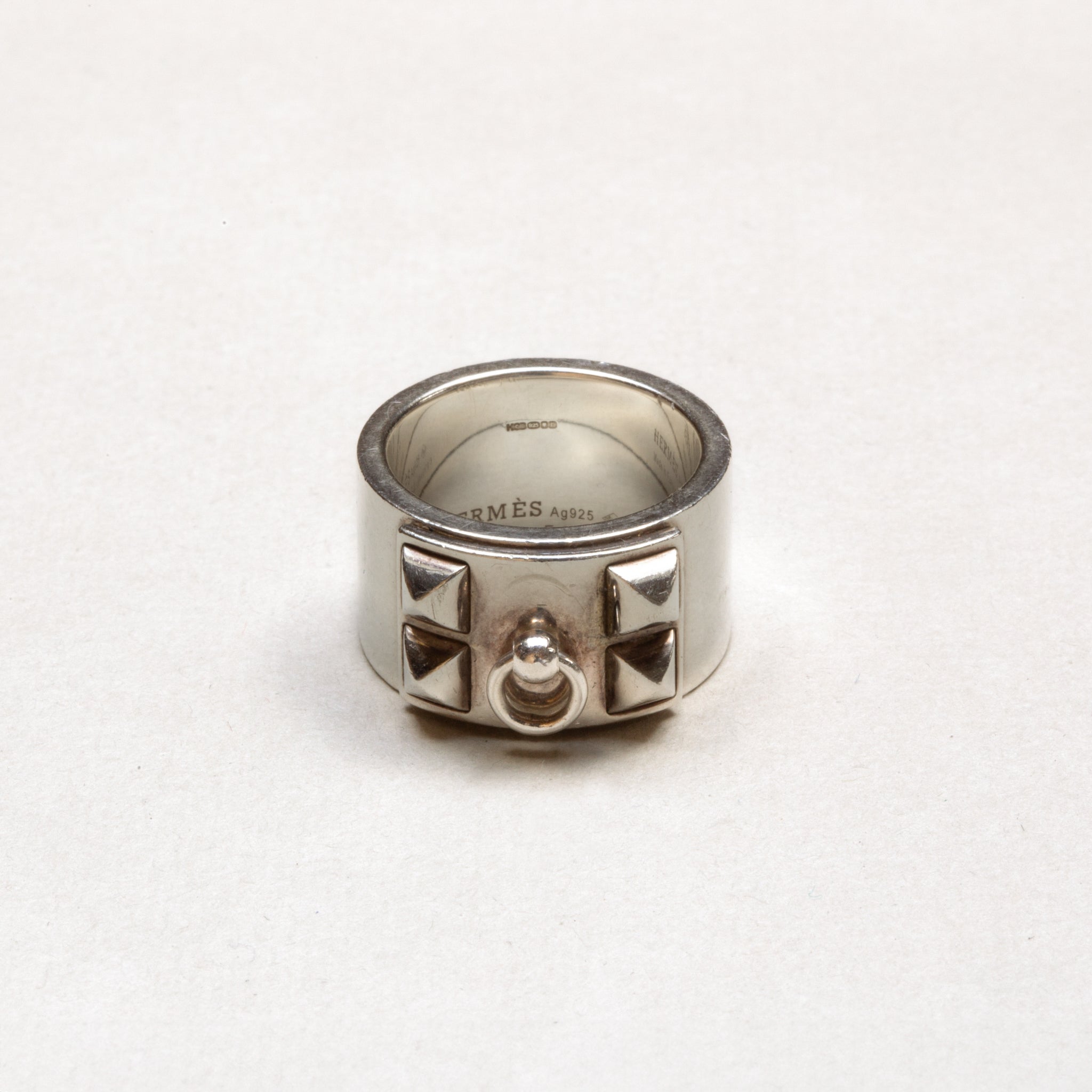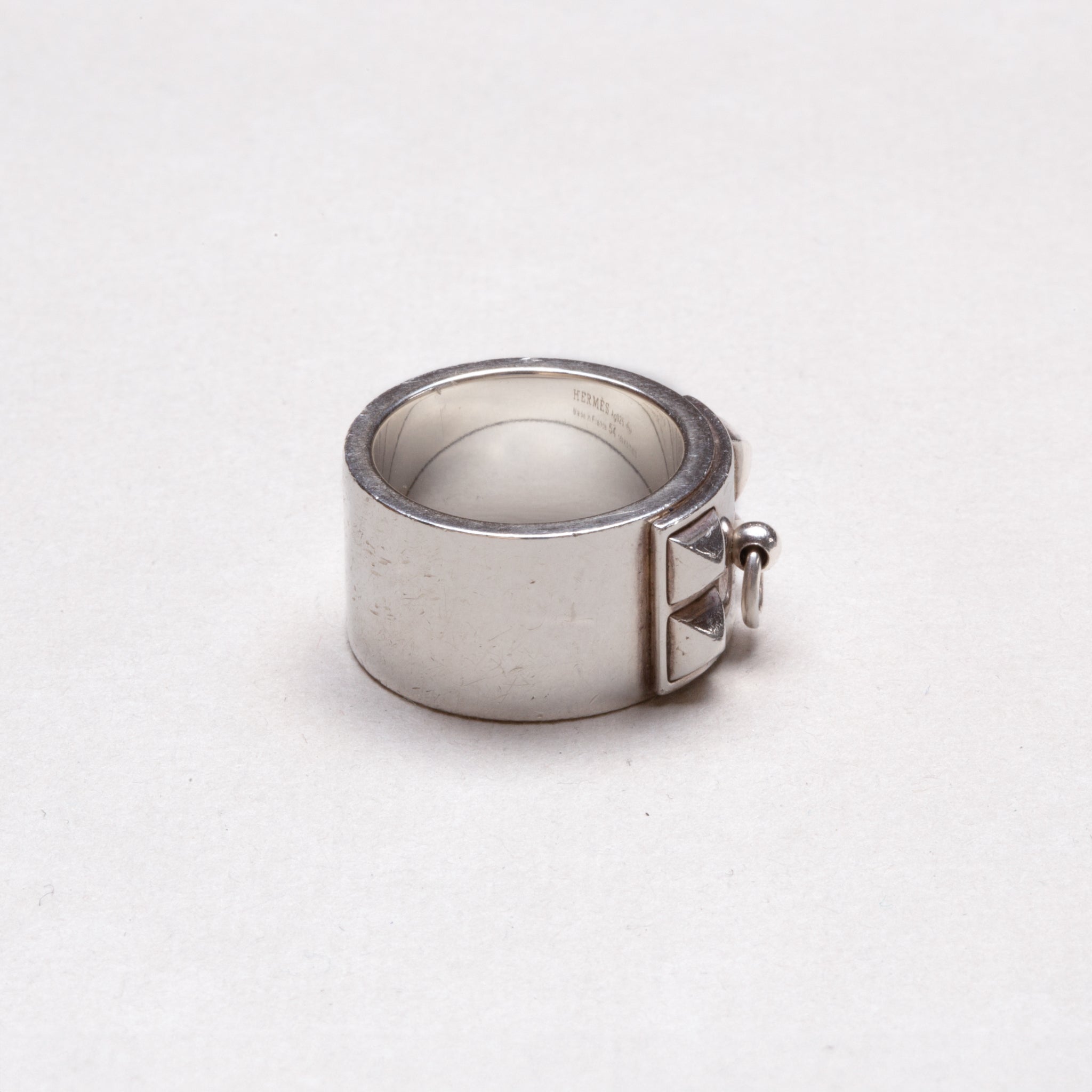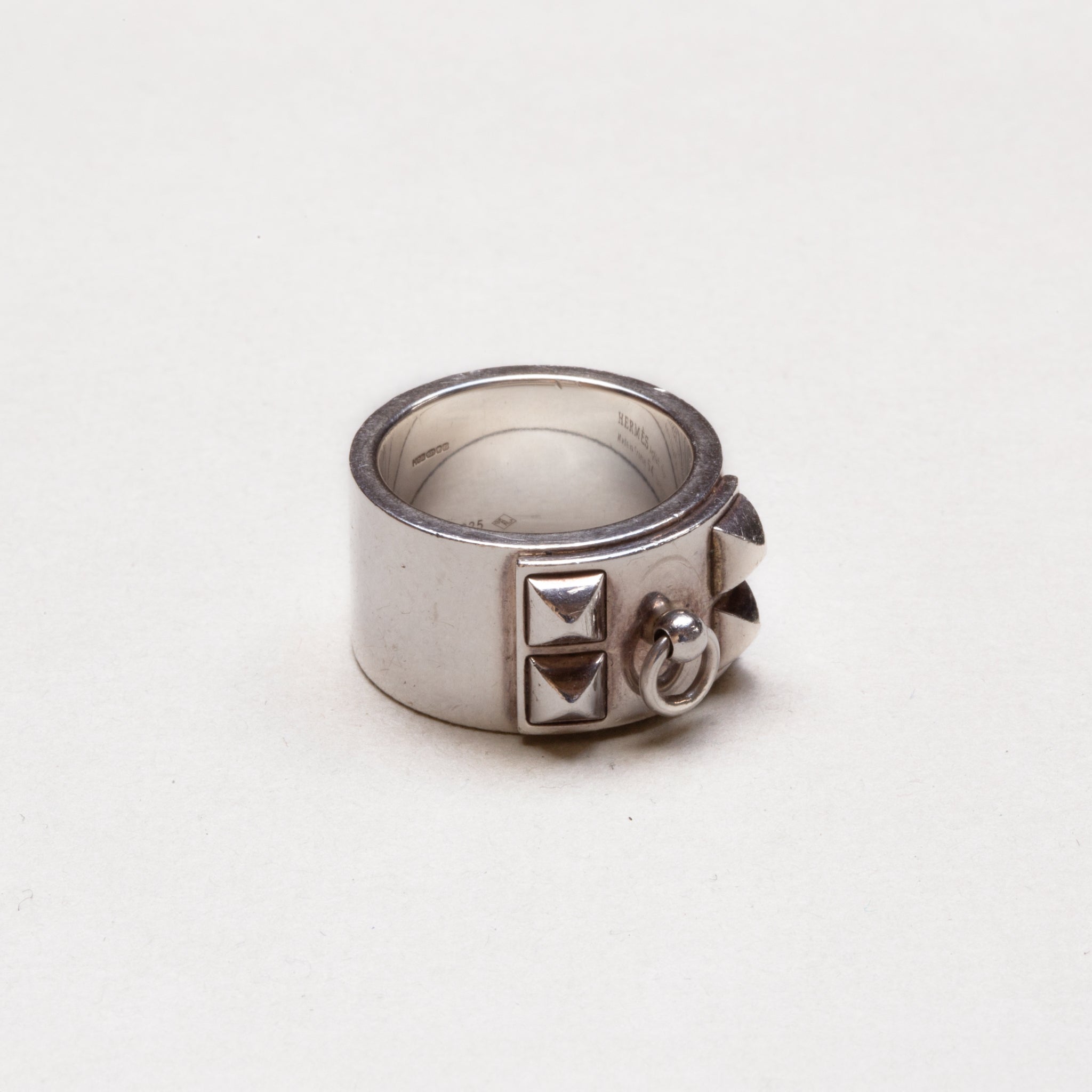 A striking vintage Hermès “Collier de Chien” ring, crafted in sterling silver and inspired by the Maison’s iconic Collier de Chien motif.