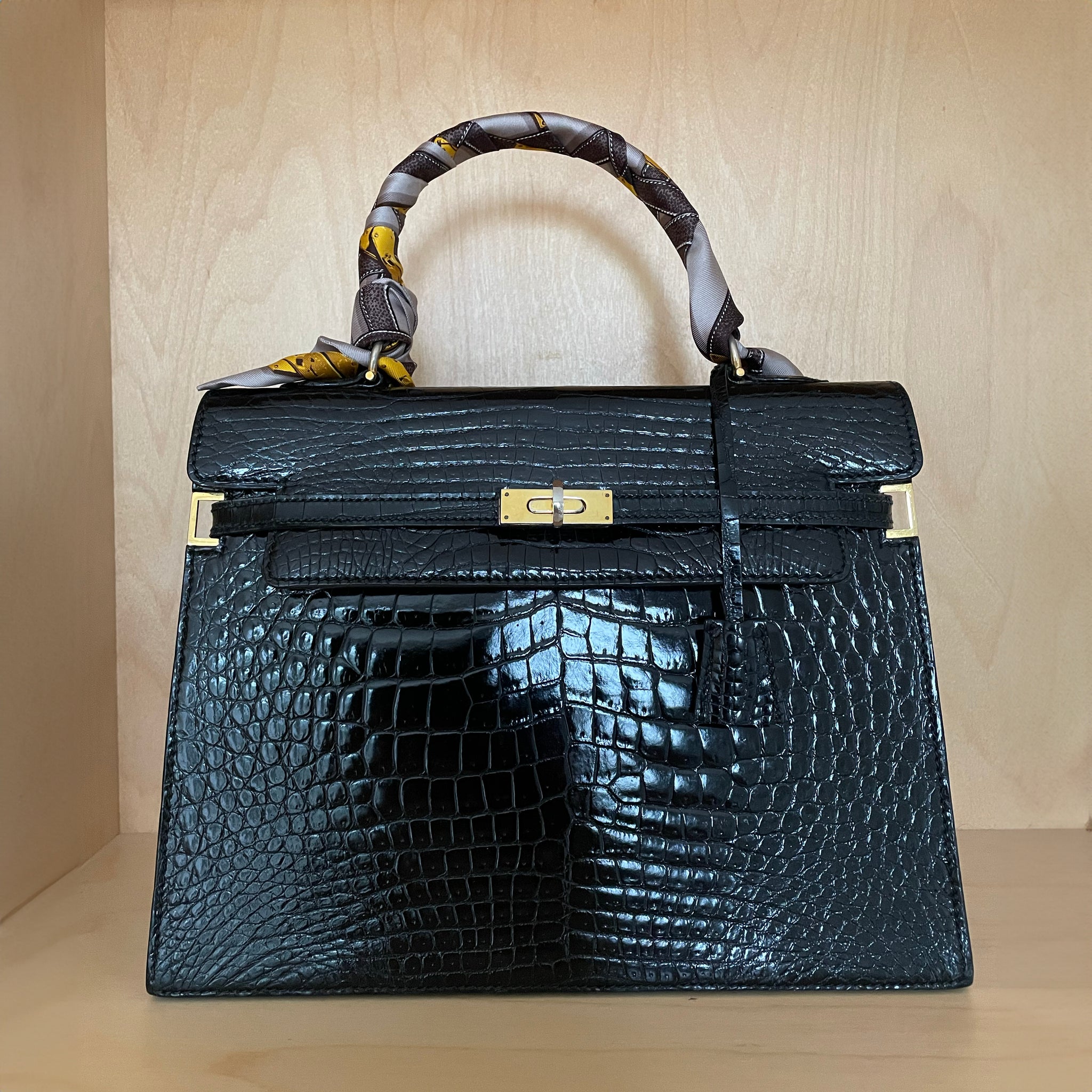 The vintage Morabito Scala bag has just landed. Crafted from the finest Niloticus crocodile leather—considered the most desirable crocodile skin and now reserved for only the most exclusive handbags—this Scala model is often compared to the Kelly by Hermès.